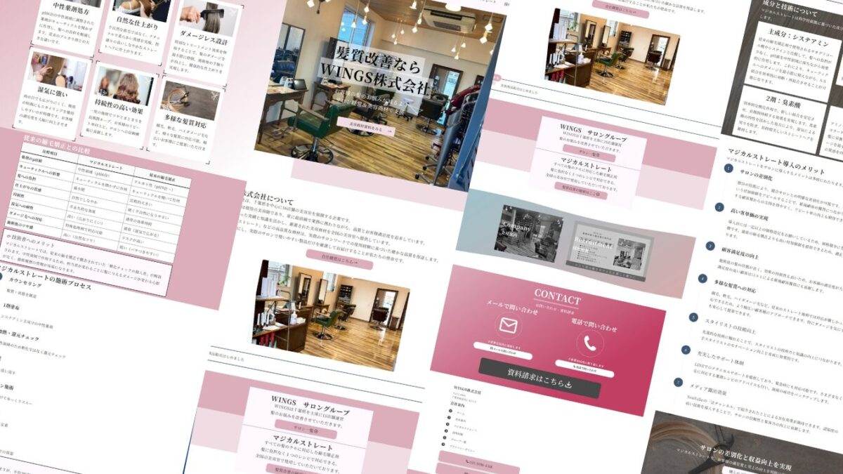 【実装内容】 トップページにて「WINGS サロングループ」「マジカルストレート」の情報を配置。サロン15店舗という実績が、商品開発の背景にある確かな経験値として伝わる構成としました。